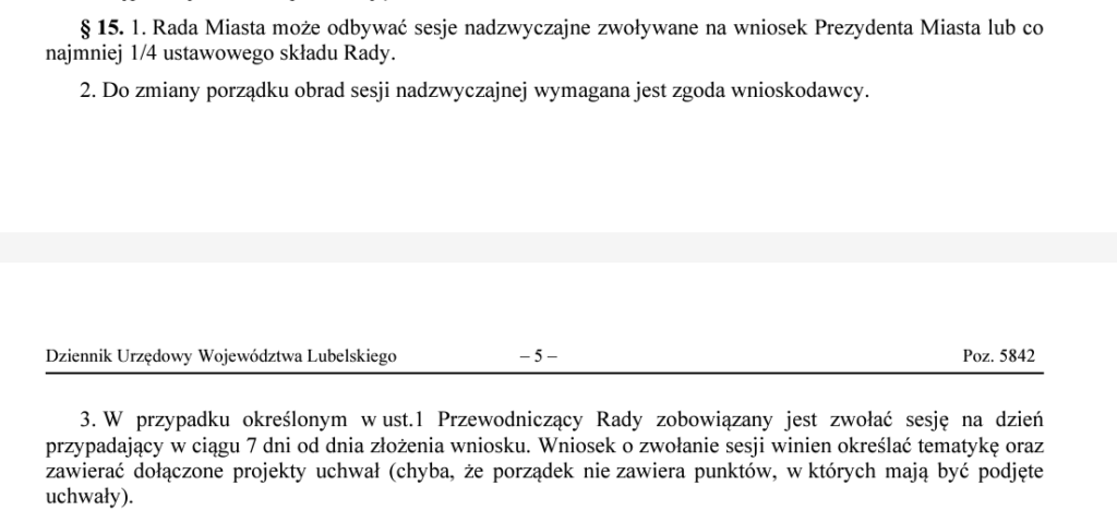 Ta druga uwaga radnego Matwiejczuka dotyczyła dwóch zdarzeń, które miały miejsce na sesji – wprowadzenia do porządku obrad drugiej skargi („na bezczynność organu administracji publicznej”) oraz odczytania odpowiedzi Rady Ministrów na stanowisko w sprawie wykreślenia Zamościa z programu dla Karpat Wschodnich i Roztocza.